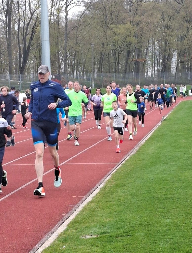 Am 15 04. wurde bei sehr guten Bedingungen der zweite Lauf pünktlich 18:00 Uhr gestartet. Was für ein Gewimmel auf der Laufbahn! Insgesamt waren immerhin 208 aktive Sportlerinnen und Sportler am Start, eine ausnehmend gute Beteiligung! Besonders erfreulich ist die Breite der Beteiligten. Die Jüngsten waren gerade mal sieben Jahre alt und die älteste Teilnehmerin, Gisela Unterberger, zählt stolze 81 Jahre. Außerdem auch gut 80 Kinder und Jugendliche, von denen ein Großteil noch im Kids-Running-Cup (<= U12) gewertet werden kann! Wie schon so oft, stellte die Montessori Schule mit deutlich über 30 die größte Teilnehmerzahl. Es ist schon erstaunlich, wie es dem engagierten Sportlehrer Ekkehard Gerecke immer wieder gelingt, seine Schüler zum Sport zu motivieren. Traditionell waren auch wieder gut vertreten die Usedomer Laufmützen. Daneben der VFC Anklam, Greifenpower, Kanuten, Radsportler und viele andere. Besonders das immer wieder ausgesprochen positive Feedback sowie die gute Stimmung der Teilnehmer und Zuschauer ist uns als Ausrichter von der Abt. Triathlon/Laufgruppe der HSG eine große Motivation.